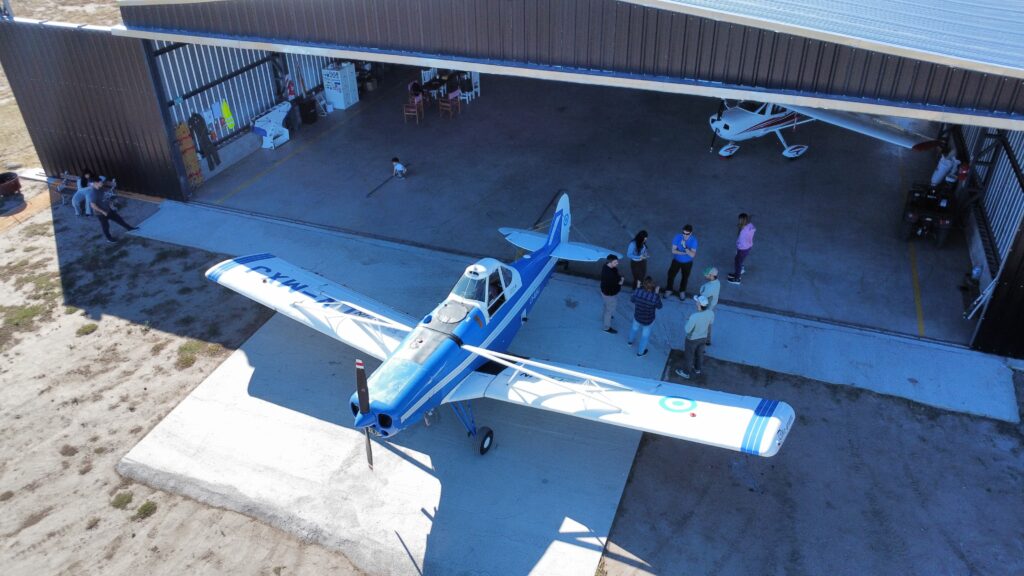 César Callegari, referente técnico del proyecto explicó a El Semiárido que Fly-In nació con la misión de brindar servicios agronómicos desde el aire, pero que su horizonte va mucho más allá: “Estamos trabajando para habilitar una escuela privada de formación de pilotos, complementaria a la que ya ofrece el Estado provincial”.
