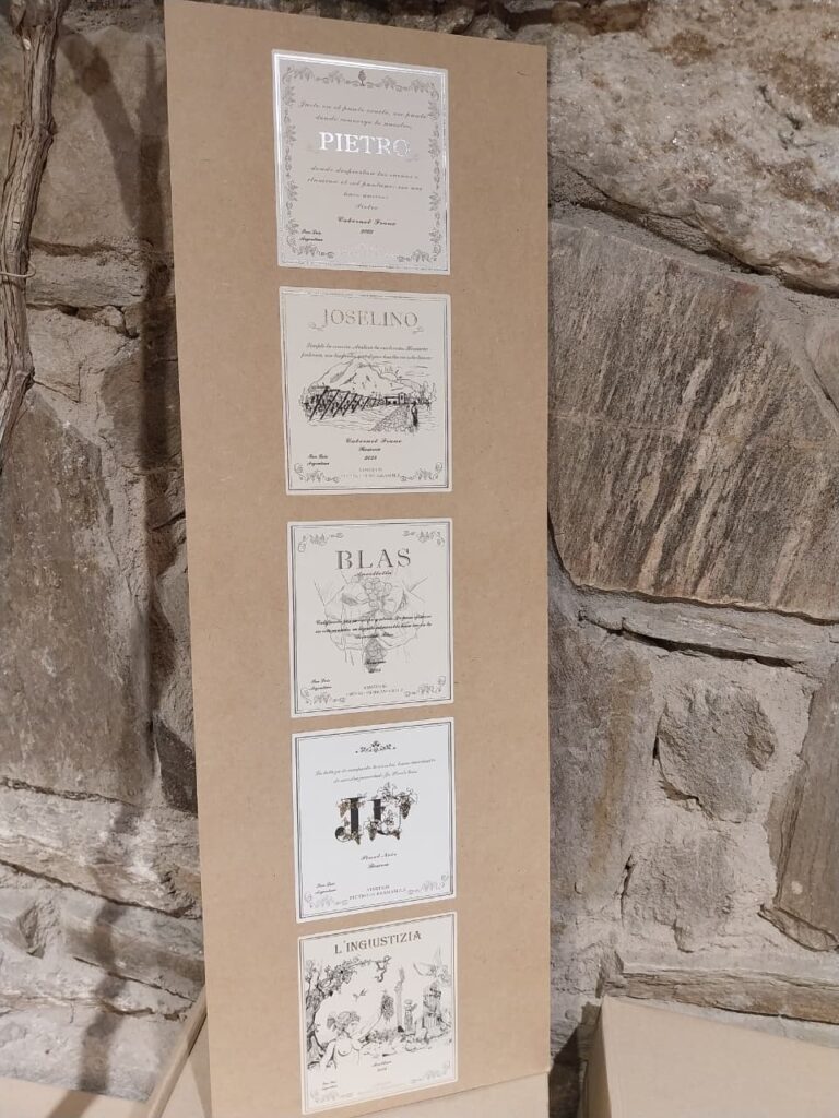 Cada etiqueta encierra un homenaje. El vino insignia, Pietro, es un bivarietal de Cabernet Franc y Cabernet Sauvignon. Su nombre alude a la piedra, pietro en italiano, piedra en latín, y a la fortaleza del suelo franco, arenoso y pedregoso.