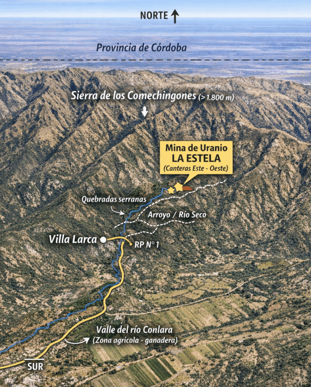 Enclavada en el faldeo occidental de la Sierra de los Comechingones, a pocos kilómetros de la localidad de Villa Larca, la antigua mina de uranio La Estela constituye uno de los capítulos más significativos, y a la vez menos conocidos, de la historia minera de la provincia de San Luis.
