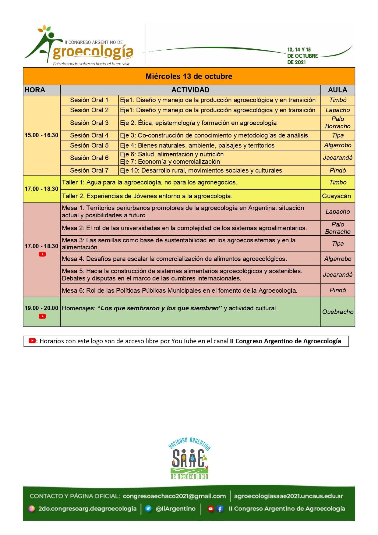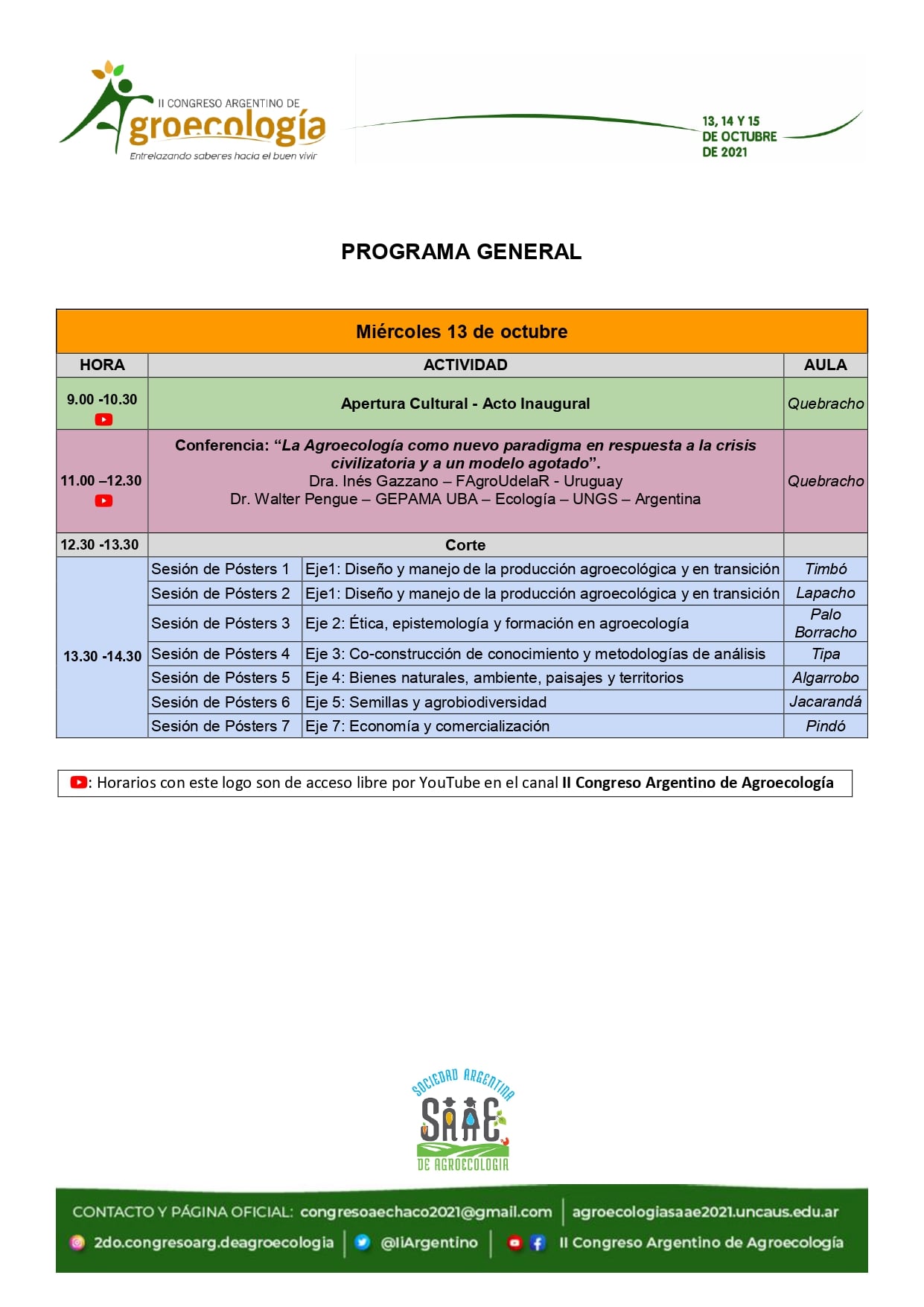 Para conocer las diferentes actividades y participar de ellas, la Comisión organizadora propone acceder a la página del Congreso: https://agroecologiasaae2021.uncaus.edu.ar/