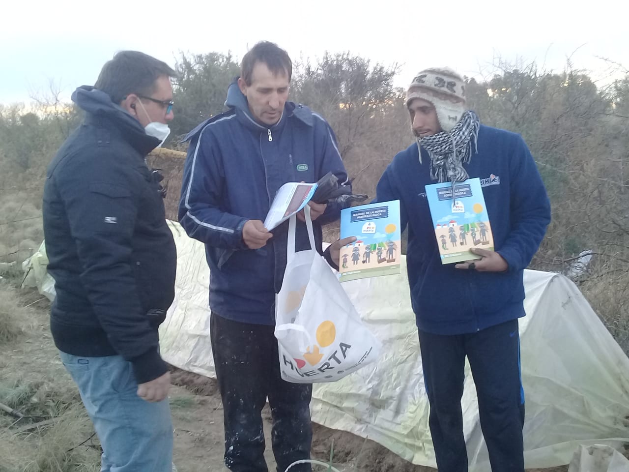 El equipo técnico gestionó semillas (lechuga, acelga, zanahoria, espinaca), cintas de riego por goteo, cartillas y calendarios de siembra ante el Programa Pro-Huerta del INTA AER Villa Mercedes, y estructura de micro túnel ante la coordinación, que fuera retirado de otro productor (arcos de hierro y plástico transparente).
