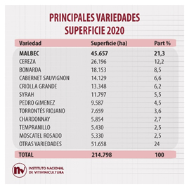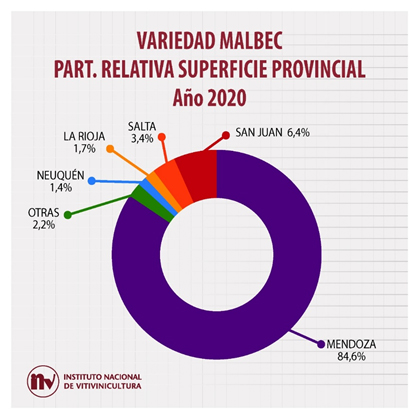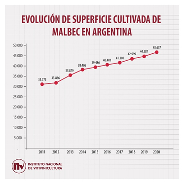 Presente en la mayoría de las provincias vitivinícolas de Argentina, el Malbec registró en el año 2020 un total de 45.657 ha cultivadas, lo cual representa el 21,3% del total de vid del país.