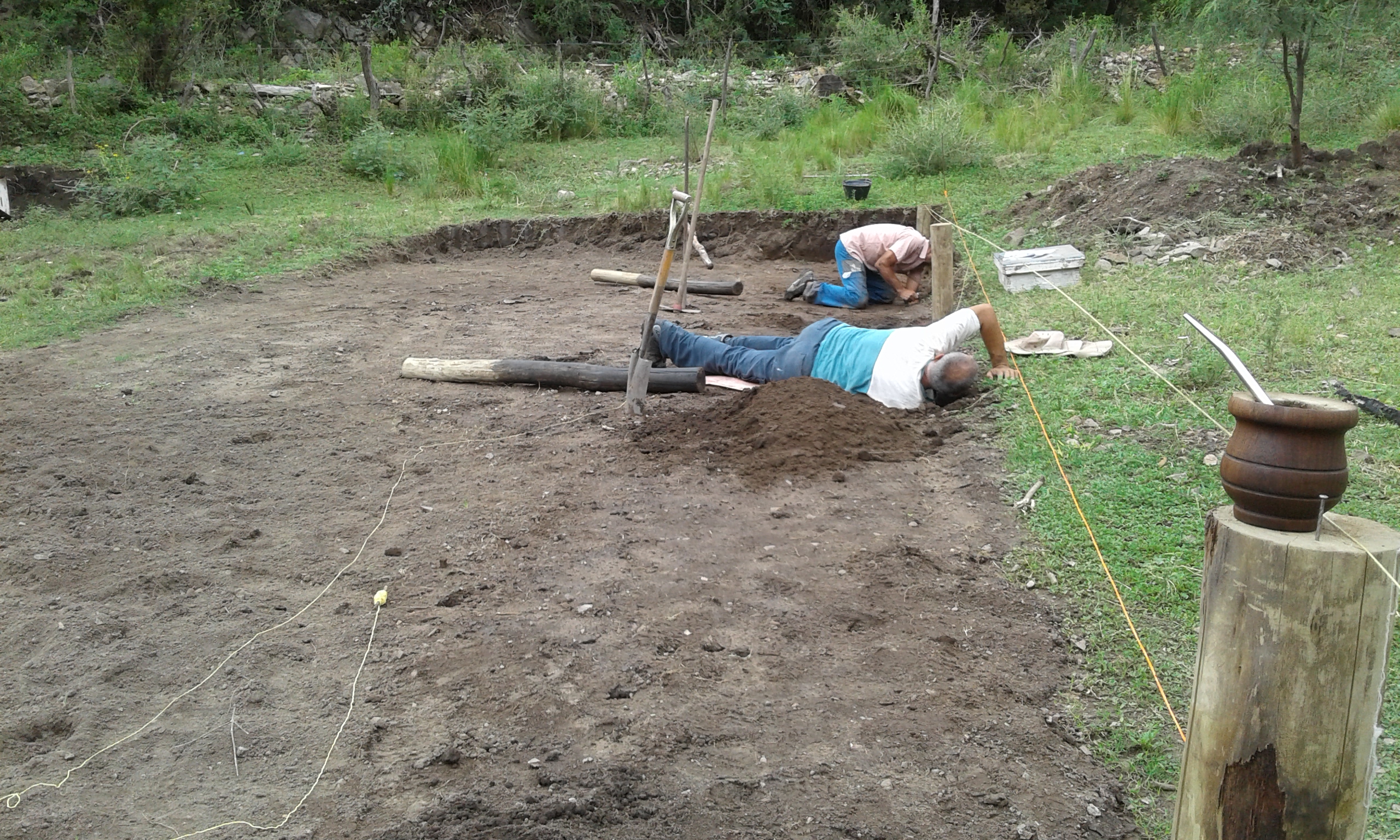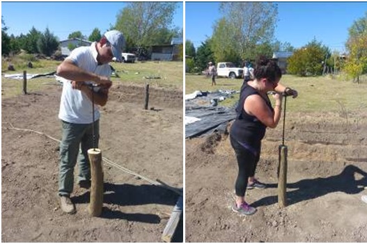3.- Realizamos el hoyado en forma manual de 0,8 m (80 centímetros) de profundidad aproximadamente. Dejando de 0.7 m fuera de la superficie. Es importante que queden al mismo nivel (no altura); para ello lo más aconsejable es la manguera transparente de albañil.