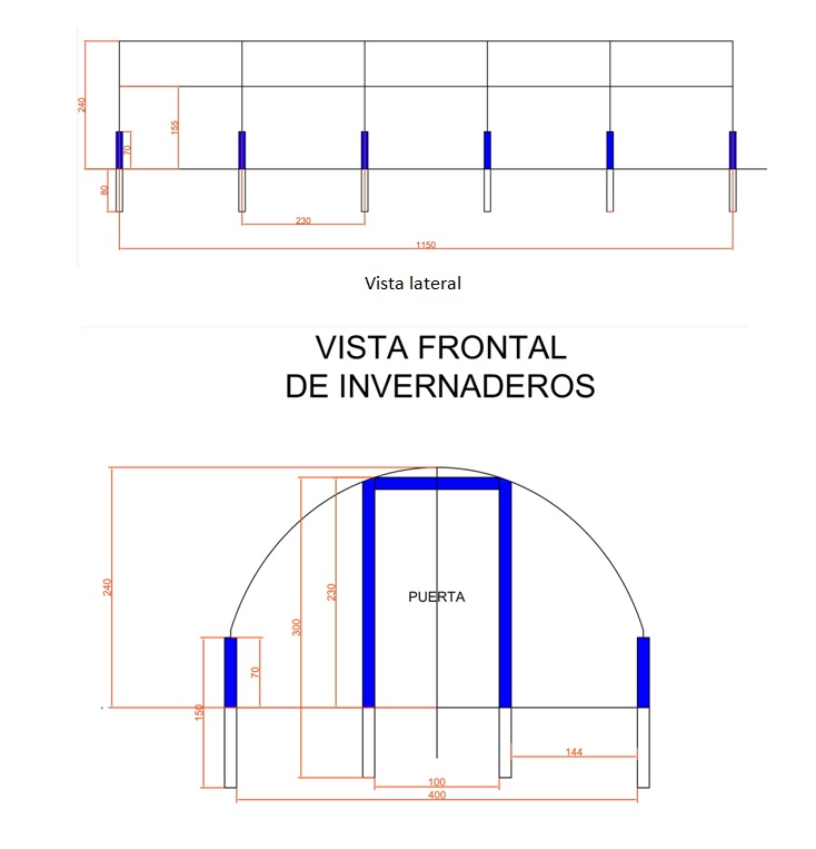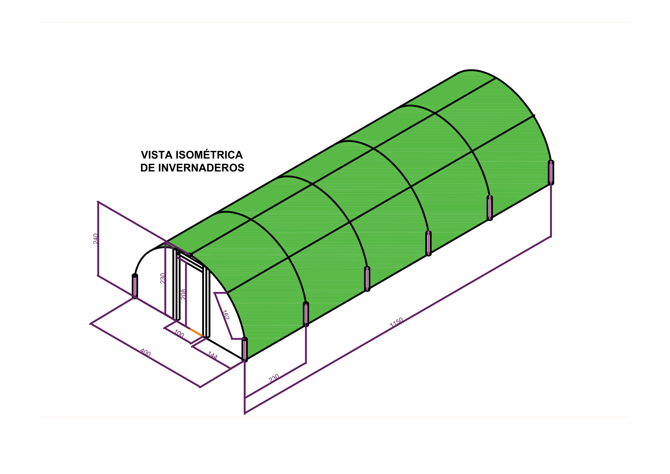 El tamaño invernadero por construir es de 11,50 m de longitud x 4 m de ancho.