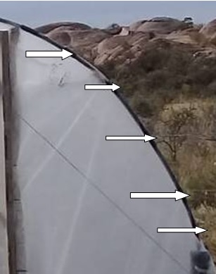 13.- En ambos extremos además de las puertas colocar uno o dos postes para darle estabilidad a la estructura, sobre todo aquéllos instalados en zona de vientos frecuentes. A 2,5-3 m de distancia del invernadero colocar postes o estacas en donde se atará con alambre galvanizado el último arco del invernadero en la porción más alta (ver imagen). Función: Tensado y sostén