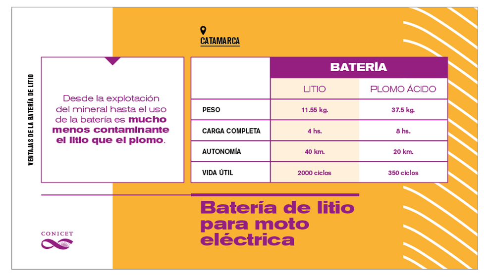 En este contexto, en el Centro de Física y Energía de la Facultad de Ciencias Exactas y Naturales (FACEN) de la Universidad Nacional de Catamarca (UNCa) trabaja un equipo multidisciplinario liderado por el doctor Gabriel Correa, investigador adjunto del Consejo Nacional de Investigaciones Científicas y Técnicas (CONICET). Allí, en el Laboratorio de Sistemas Hidrógeno y Litio avanzan en una batería de litio más liviana y duradera que las baterías tradicionales. Además, desarrollaron una aplicación para teléfono celular que le indica al usuario si necesita una recarga. La batería es parte neural de la Moto Eléctrica Litio Catamarca (MeLICA) presentada el pasado mes de junio en la capital provincial.