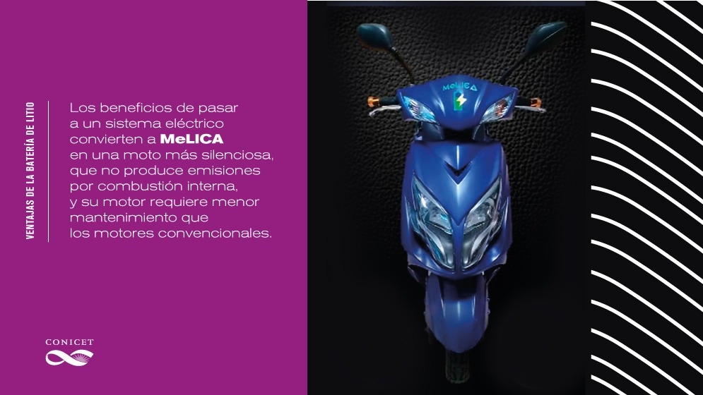“Desde la explotación del mineral hasta el uso de la batería es mucho menos contaminante el litio que el plomo”, explica Tomás Falaguerra, ingeniero químico, becario doctoral del CONICET e integrante del equipo. Además, por poseer un sistema eléctrico MeLICA es una moto silenciosa, que no produce emisiones por combustión interna y su motor requiere menor mantenimiento que los motores convencionales.