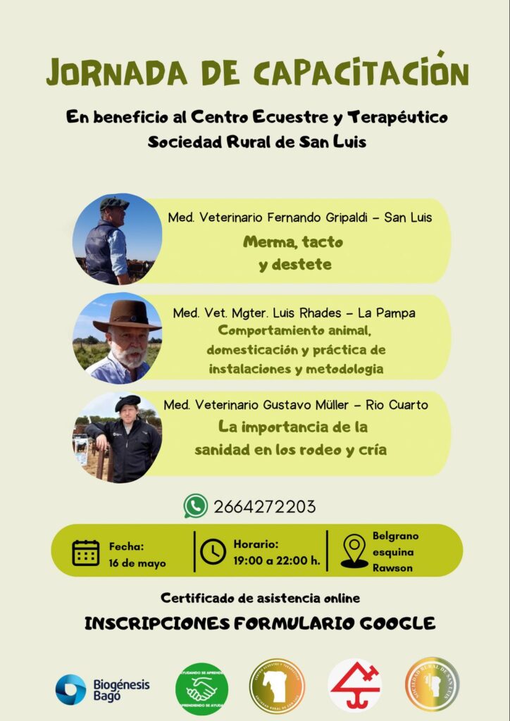 La Sociedad Rural de San Luis, en conjunto con el veterinario Fernando Grippaldi y el equipo del nuevo Centro Ecuestre y Terapéutico, organiza una jornada intensiva dirigida a profesionales de la veterinaria y del ámbito rural. El encuentro se realizará el próximo 16 de mayo, de 19 a 22 horas, en las instalaciones de la Sociedad Rural, y también se podrá seguir de manera virtual a través de Google Meet, permitiendo la participación de asistentes desde cualquier punto del país.
