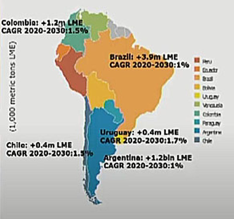 Para Brasil y Argentina se estima un crecimiento del 1% para el decenio 20/30, con números superiores para Chile (+1,5) y Uruguay (+1,7). Los costos del maíz y la soja atentan con un mayor crecimiento de la región.