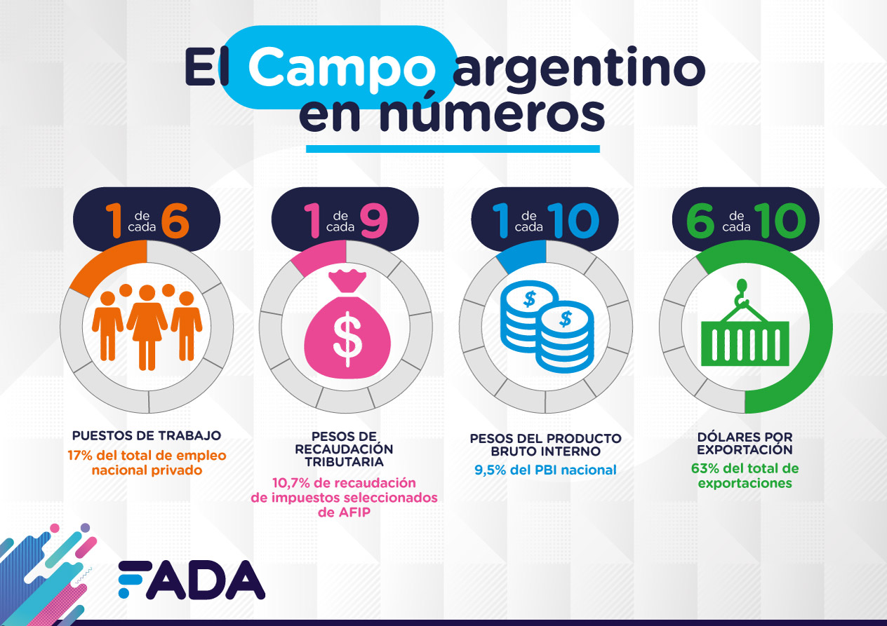El informe registra los números del campo a la vez que traduce en datos y recursos visuales lo que significan en el desarrollo y la diaria del país. “El campo argentino en números es la foto de lo que aporta el área productiva, que en definitiva es trabajo argentino, para nosotros y el mundo”, afirma Nicolle Pisani Claro, economista de FADA.
