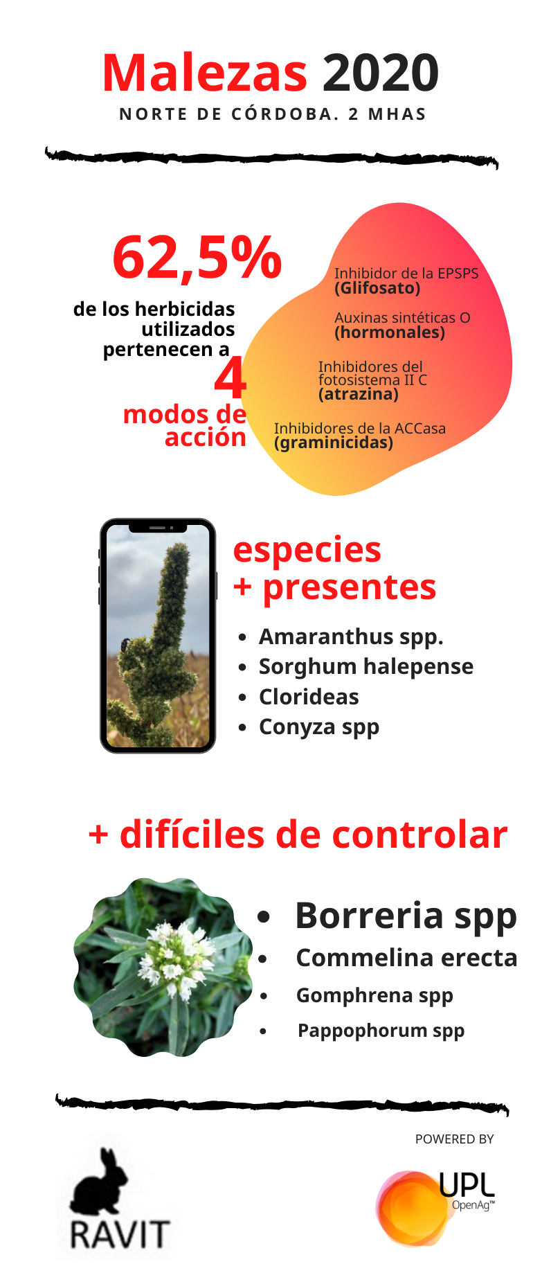 Con el apoyo de UPL, RAVIT sacó una nueva radiografía de las malezas en el norte de Córdoba. Una de las razones que explica la dificultad para controlar las cinco principales especies radica en que, en el 62,5% de los casos, se continúan usando apenas cuatro modos de acción de herbicidas con baja eficacia para controlarlas.