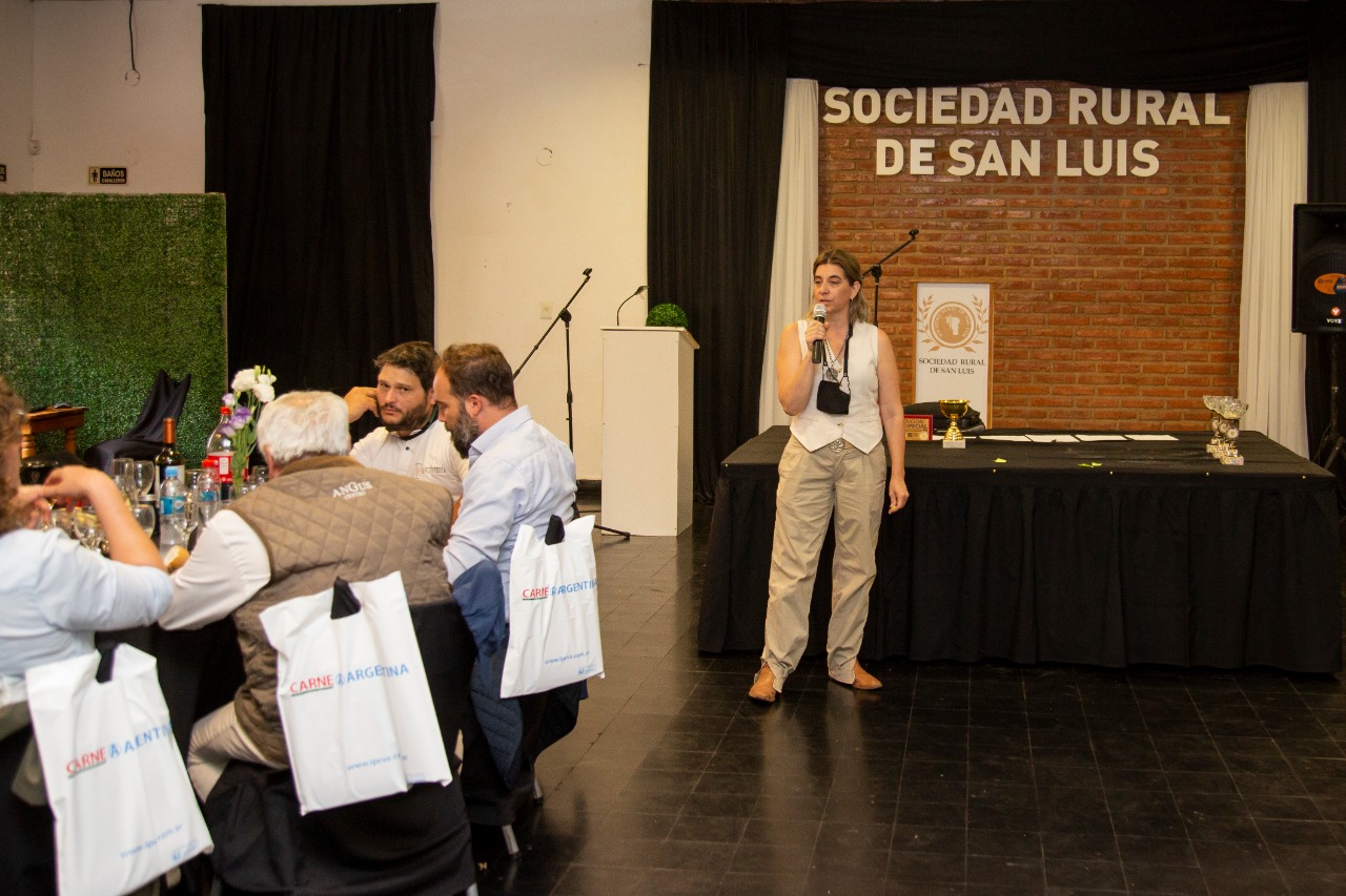 El agradecimiento de la conductora de la rural puntana se extendió también los miembros del Ateneo Juvenil y de la Comisión Directiva, a las firmas consignatarias, la Universidad Católica de Cuyo, los esforzados troperos, entre otros, que fueron agasajados por la entidad junto a los productores e invitados especiales con la degustación de un asado donado por la firma Ser Beef, que hace pocos meses abrió otra unidad de negocios con la venta directa de cortes de novillos de exportación y que también ofertó desde un stand durante el concurso de novillos.