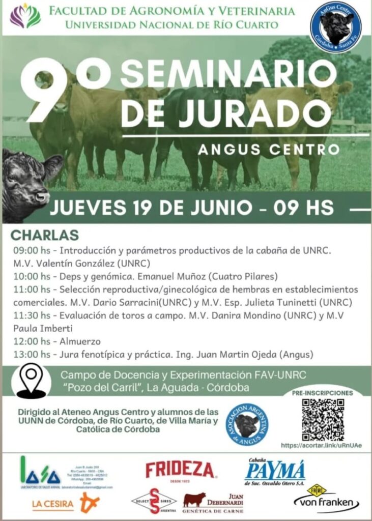 La Facultad de Agronomía y Veterinaria de la Universidad Nacional de Río Cuarto (UNRC) se prepara para recibir una nueva edición del tradicional Seminario de Jurado Angus Centro, un espacio formativo clave para estudiantes, profesionales y ateneístas del mundo ganadero. La cita será el próximo jueves 19 de junio desde las 9:00 hs, en el Campo de Docencia y Experimentación “Pozo del Carril”, ubicado en La Aguada, provincia de Córdoba.