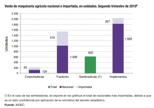 En el segundo trimestre de 2019 los tractores de producción nacional presentan una participación de 66,4%, las cosechadoras de 57,1%, y los implementos de 89,8% en el total de unidades vendidas de sus respectivos segmentos.