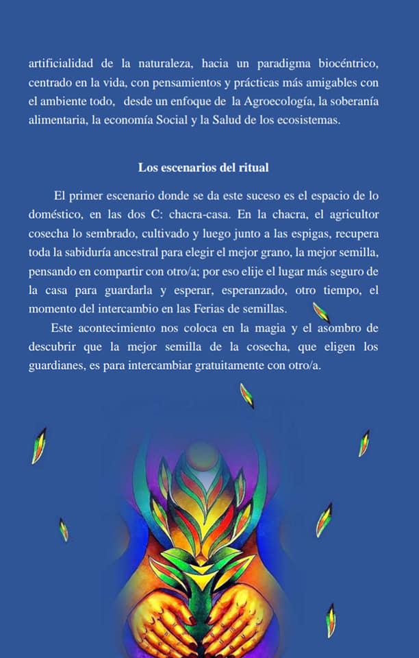 El autor propone que, con las semillas en manos de los pueblos originarios, los/as campesinos/as y los/as agricultores/as de Latinoamérica, nos puede ayudar a pensar y tratar de sentir qué tipo de vida deseamos de verdad, si la que nos venden las grandes corporaciones por tv o una propia que sea posible y más agradable.
