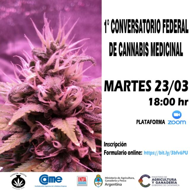 El próximo martes 23 de marzo se desarrollará el primer conversatorio federal de cannabis medicinal, un encuentro que se hará vía Zoom y que está organizado conjuntamente por el Ministerio de Agricultura y Ganadería de la Provincia de Catamarca, Confederación Argentina de la Mediana Empresa (CAME) e INTA.