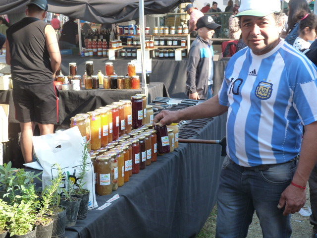 Este fin de semana estuvo junto a otros feriantes en la Exposición Rural de Villa Mercedes donde organizó su lugar de exposición y ventas con plantines de aromáticas y huerta, dulces de diferentes sabores y miel.