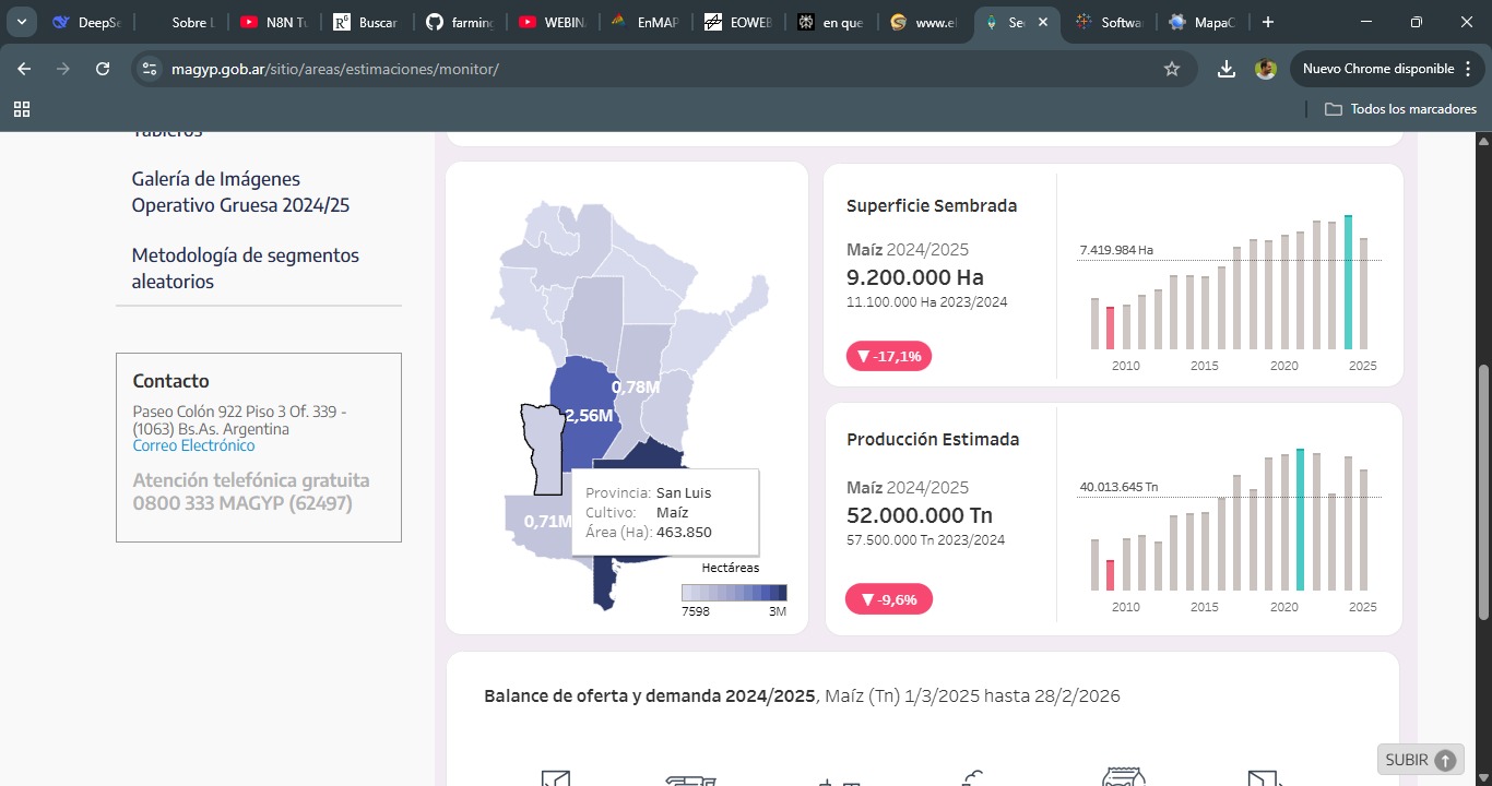 Este desempeño, en gran parte, se apoya en la fortaleza de la Dirección de Estimaciones Agrícolas: extensa territorialidad, capacidad técnica para combinar teledetección con encuestas de campo, y un sistema federal de monitoreo. Además, se complementa con tableros comparativos de series históricas que permiten analizar hasta diez campañas consecutivas.