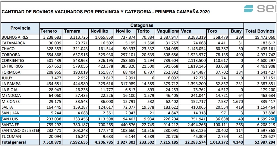 Más de 52 millones de bovinos fueron vacunados contra la fiebre aftosa durante la primera campaña del 2020, según datos del Servicio Nacional de Sanidad y Calidad Agroalimentaria (Senasa).