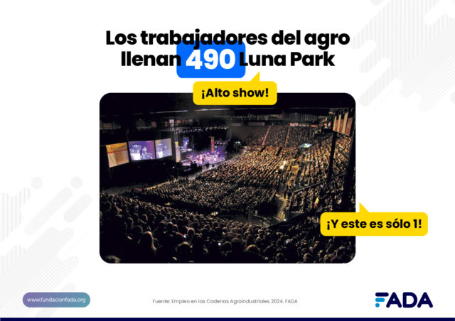 2 de cada 10 empleos en Argentina se generan en las cadenas agroindustriales, el equivalente a 4,1 millones de puestos de trabajo. Esto representa el 23% del empleo privado de nuestro país. Estos son algunos de los datos que presenta FADA (Fundación Agropecuaria para el Desarrollo de Argentina) en su informe de Empleo de las Cadenas Agroindustriales. “Acostumbramos a traducir los números en ejemplos concretos para dimensionarlo: los trabajadores agroindustriales llenan 490 Luna Park”, explica Natalia Ariño, economista de FADA.
