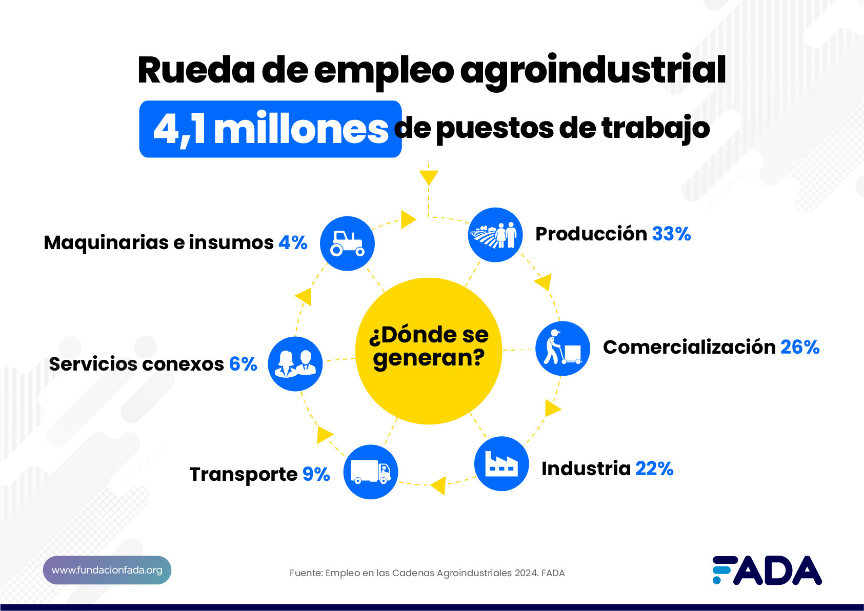 Es un estudio de FADA que se basa en la estimación de los puestos de trabajo generados en las cadenas agroalimentarias y agroindustriales, y su participación en el empleo nacional.