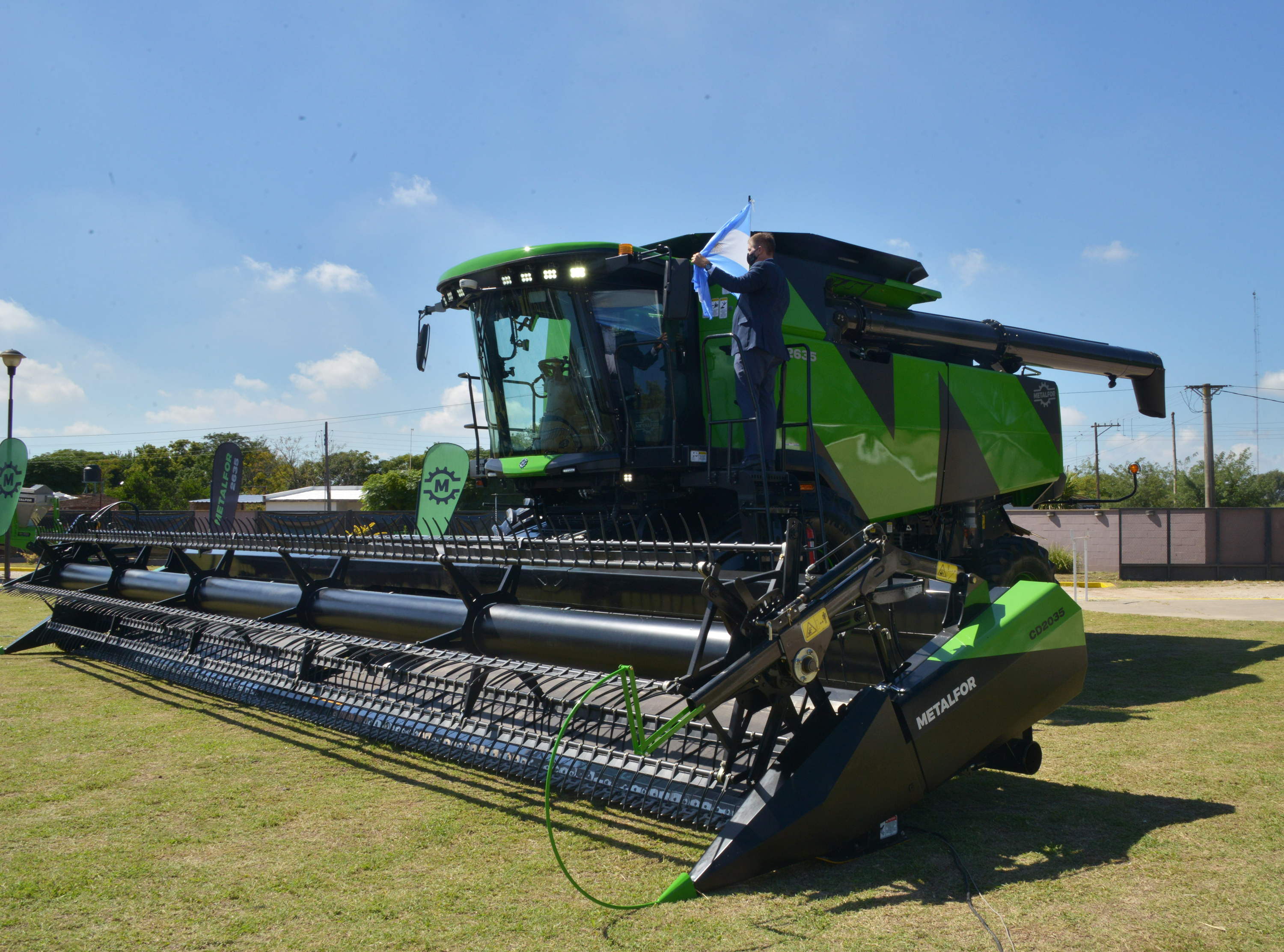 El ministro de Agricultura, Ganadería y Pesca, Luis Basterra, y el secretario de Agricultura, Ganadería y Pesca, Jorge Solmi, participaron de la presentación de la nueva cosechadora Metalfor 2635, lanzada por la empresa homónima en la localidad cordobesa de Marcos Juárez. También, el acto inaugural contó con la presencia a través de videoconferencia, del gobernador de Córdoba, Juan Schiaretti, y del presidente de Metalfor, Eduardo Borri.