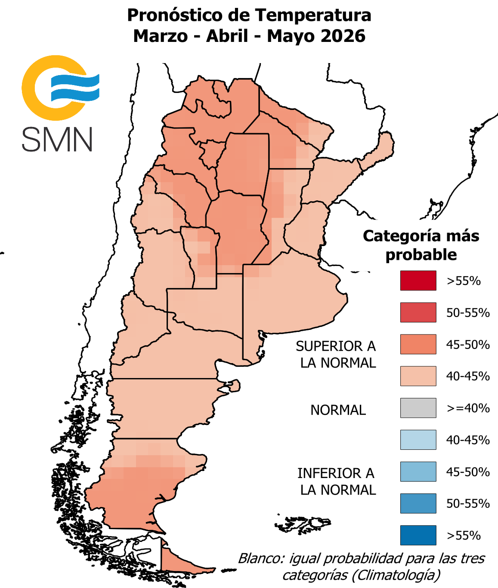 El informe fue difundido por el Servicio Meteorológico Nacional (SMN) y abarca el trimestre marzo-abril-mayo. El organismo advierte que amplias regiones del país podrían registrar marcas térmicas superiores a la normal, mientras que las lluvias mostrarán variaciones significativas según la zona.