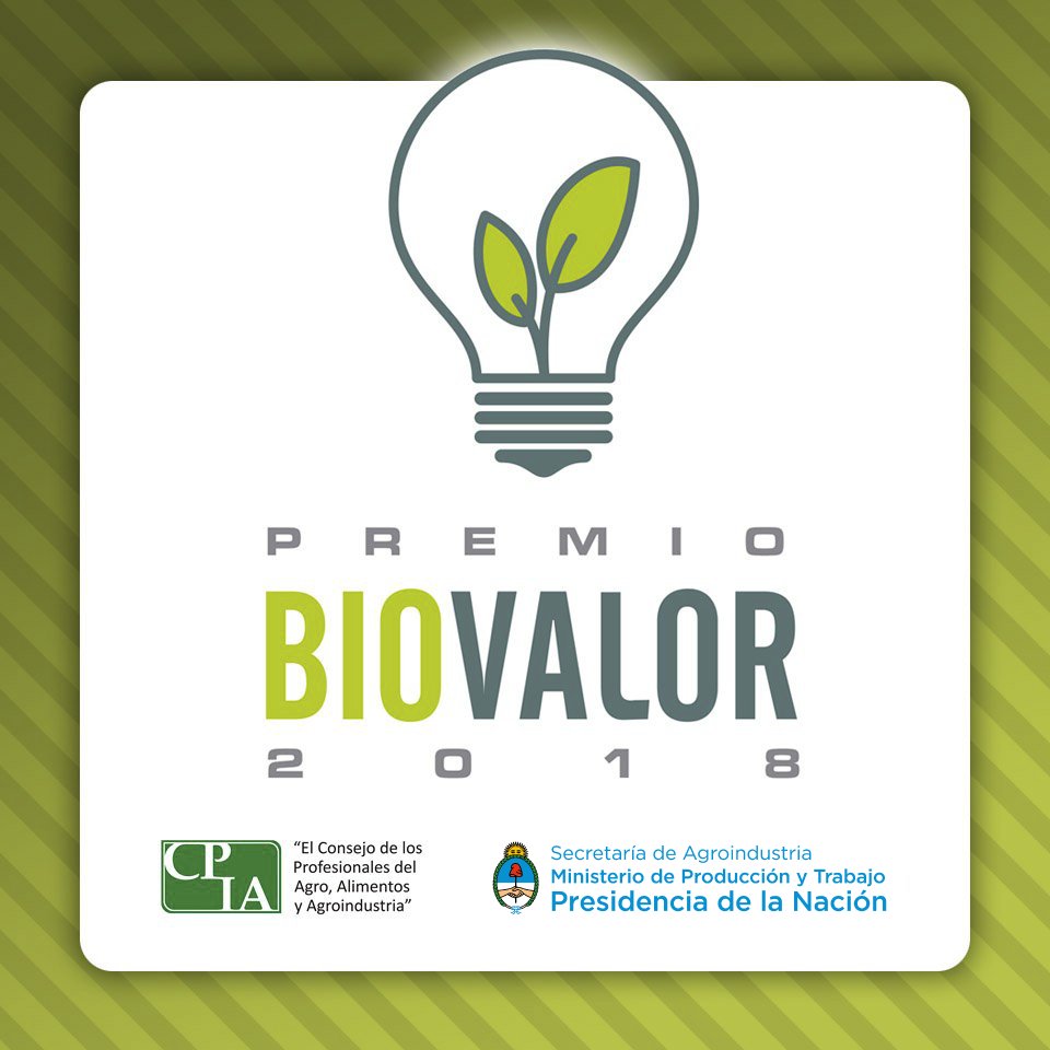 La Secretaría de Alimentos y Bioeconomía de la cartera agroindustrial de la Nación, en conjunto con el Consejo de los Profesionales del Agro, Alimentos y Agroindustria (CPIA), otorgarán el premio BioValor 2018 a los trabajos que se destaquen en lograr resultados aplicables en forma directa o indirecta en instituciones públicas, empresas agropecuarias o agroindustriales, o en la formulación de políticas sectoriales que favorezcan el desarrollo regional y nacional de biotecnología, biomateriales y/o bioinsumos, contemplando sustentabilidad ambiental y equidad social.