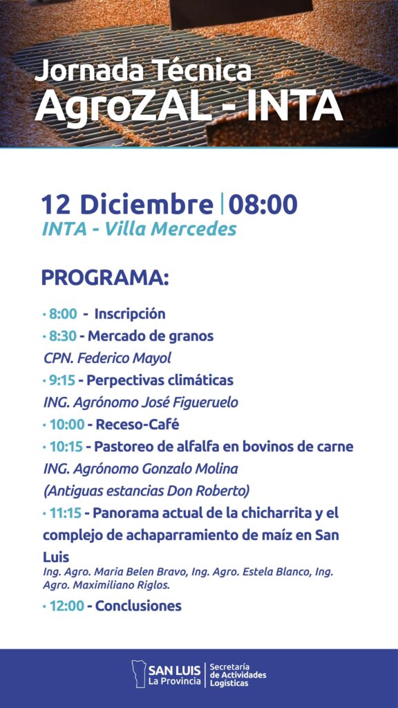 El encuentro se desarrollará desde las 8 del 12 de diciembre próximo en la Estación Experimental del INTA, ubicada en el cruce de las rutas nacionales 7 y 8, en Villa Mercedes.