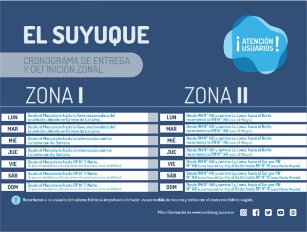 De manera continua el equipo de San Luis Agua, se encuentra monitoreando el lugar a los fines de suspender cuando las condiciones lo permitan, el mencionado turnado para la entrega del recurso y normalizando paulatinamente la provisión.
