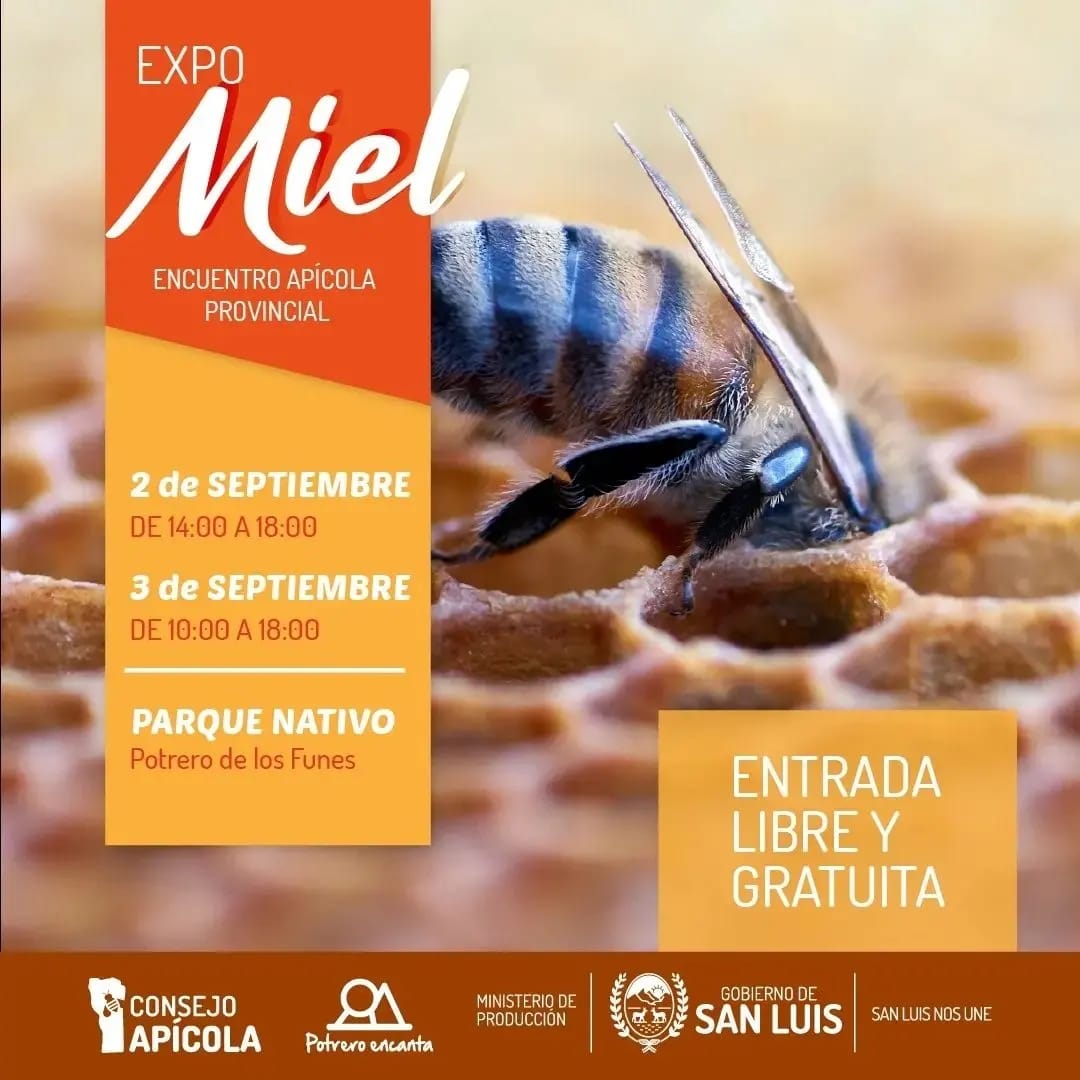 Este viernes 2 y sábado 3 de septiembre se realizará en el Parque Nativo de la localidad turística de Potrero de los Funes la expo organizada por el Consejo Apícola Provincial, presidido por el Ministerio de Producción en conjunto con el municipio local, INTA, INTI, SENASA, UNSL y cooperativas apícolas de la provincia.