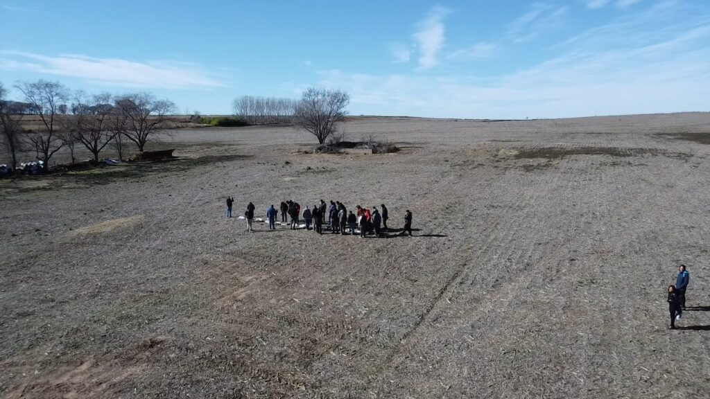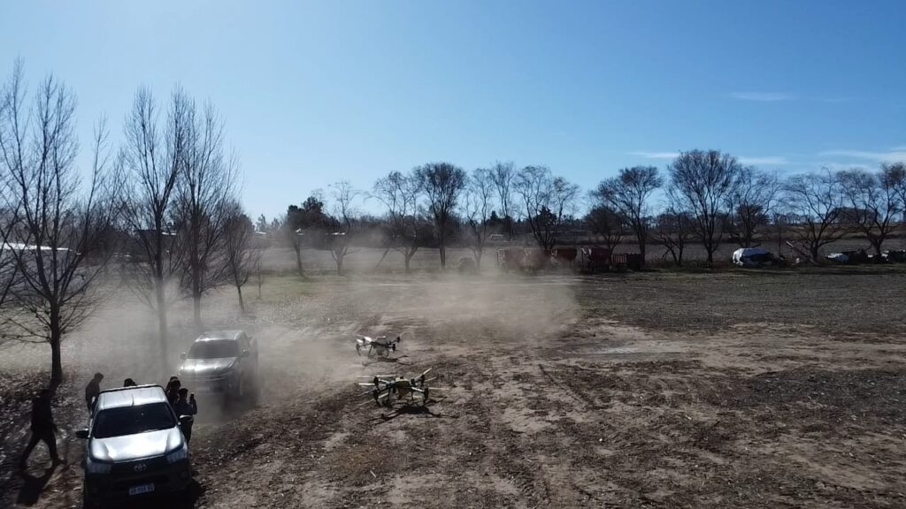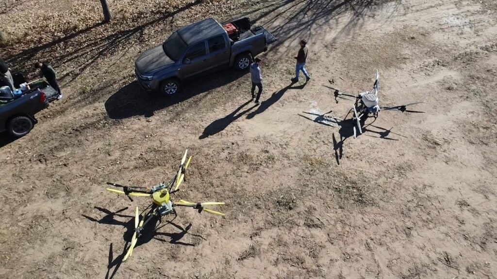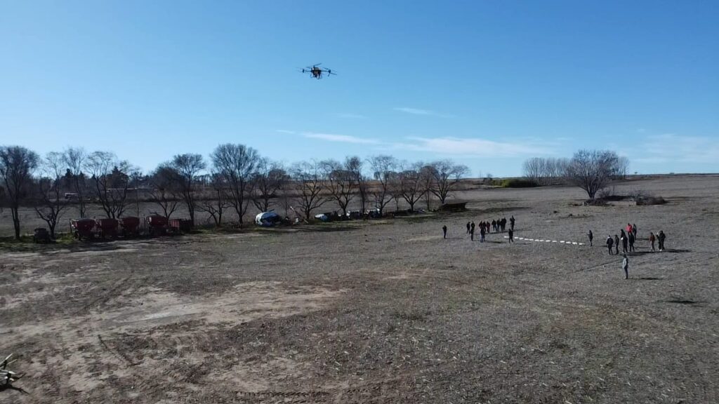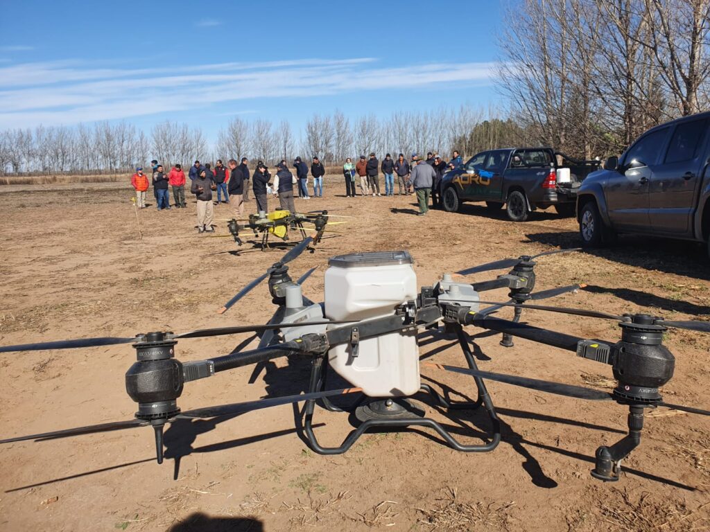 Después de unas empanadas fritas al disco, se realizó una demostración con drones en pulverización y siembra, a cargo de Oscar Irusta, de Agro Vants