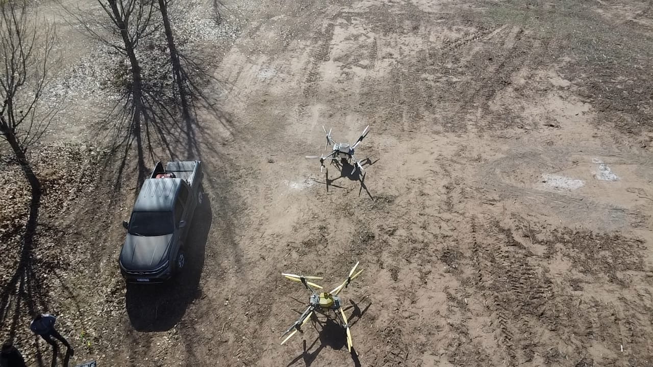 Después de unas empanadas fritas al disco, se realizó una demostración con drones en pulverización y siembra, a cargo de Oscar Irusta, de Agro Vants