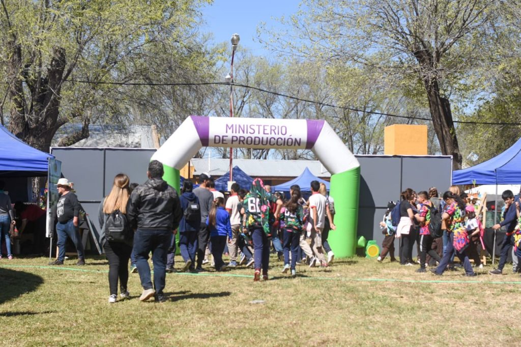 En el corazón del complejo, el gran arco inflable del Ministerio de Producción invita a los visitantes a pasar y conocer las políticas públicas del Estado provincial destinadas al campo y la industria.