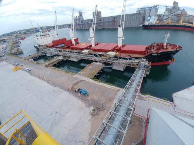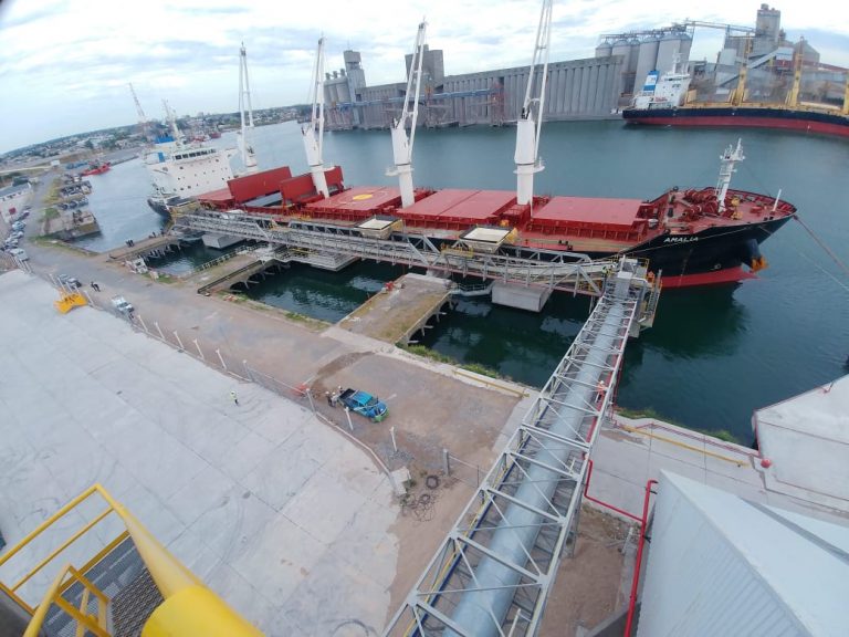 Durante la actividad, el buque AMALIA, bandera de Malta, realizó la descarga de 4.950 toneladas de fosfato monoatómico y diamónico, con el trabajo de la agencia marítima Pleamar y la agencia de estiba Serviport.