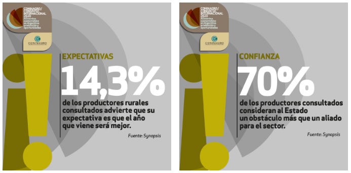 Estos resultados se desprenden de un relevamiento de expectativas y percepciones sobre la realidad productiva actual realizada por la consultora Synopsis, entre el 24 de septiembre y el 5 de octubre, entre productores de más de 14 provincias. Los datos fueron presentados durante el Congreso Internacional Coninagro 2020 que este año se realiza en modalidad virtual y bajo el título ¨Alimentos sustentables en Argentina: producción y oportunidades».