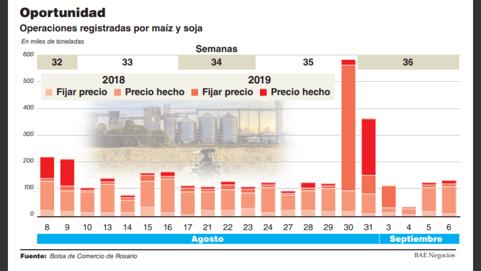 Esto hizo que en el octavo mes del año, y según el portal oficial Sio granos, el volumen comercializado de soja fuera de 3,13 millones de toneladas, versus los 2,47 millones de julio, lo que mostró una alza del 26,7 por ciento. Ocurrió por lo entregado los dos últimos días previos a las retenciones. Las ventas diarias venían con un promedio de 100.000 toneladas. El 30 de agosto se pactaron 362.461 toneladas. La relación es de 1 a 3.