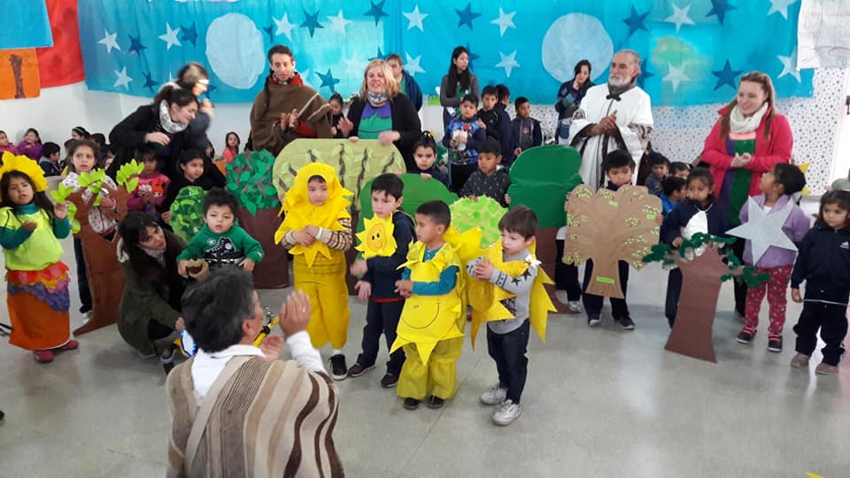 También cantaron junto con los chicos canciones típicas de la cultura huarpe y se explicó a los padres el trabajo de difusión que se realiza. Señalaron que además de informar sobre las cualidades y frutos del algarrobo y su integración en el currículo se trabaja sobre valores como la amistad, el amor a la familia, el respeto, la diversidad y la tolerancia.