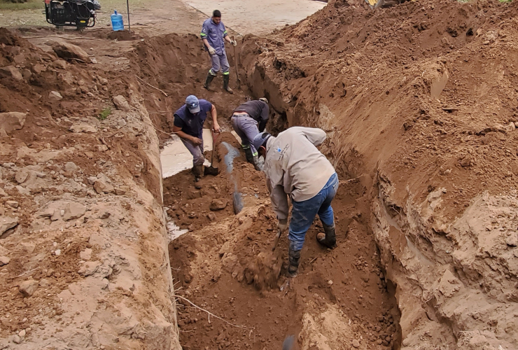 Personal de la sociedad del Estado realizó la colocación de un tramo de cañería nueva en reemplazo de un sector que estaba fisurado.
