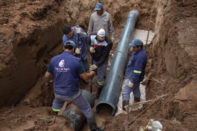 Este miércoles a la mañana, una de las cuadrillas de la sociedad del Estado realizó una reparación en un tramo del acueducto Potrero de los Funes – Las Chacras a la altura de la rotonda del golf, en Juana Koslay.