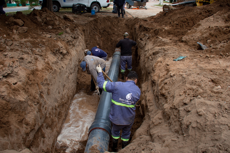 “Cambiamos un caño de pvc de 400 milímetros y seis metros de largo debido a que el anterior tenía una fisura, producto de algún golpe de presión, y estaba perdiendo”, afirmaron desde San Luis Agua e indicaron que “esta tarde el servicio será restablecido y mañana (jueves) ya funcionará de manera óptima”.