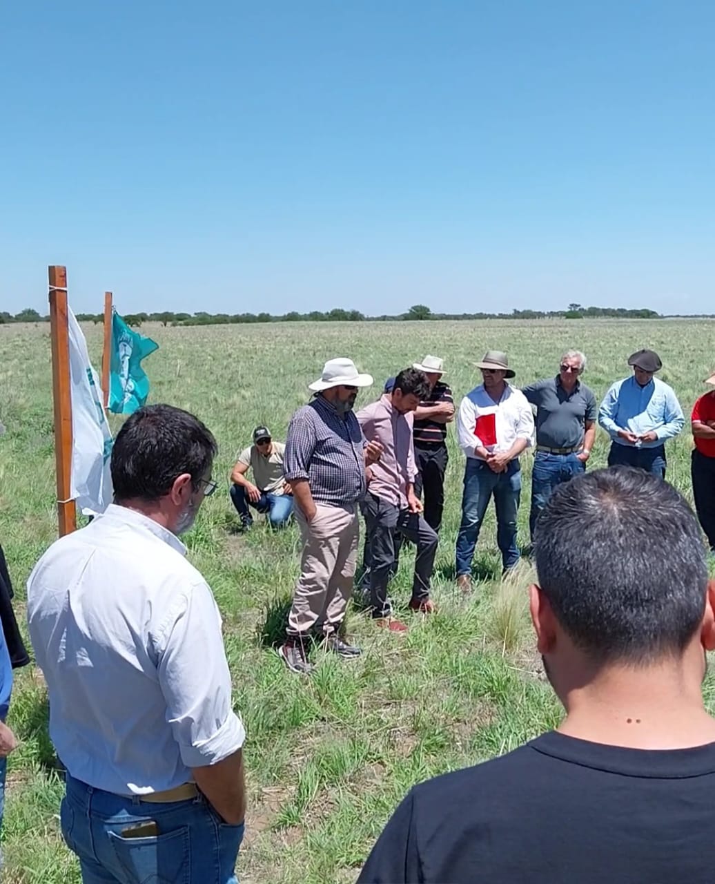 Tres kilómetros al este del casco y 40 al sur de Villa Mercedes se desarrolló una jornada donde expusieron los dueños de casa, técnicos del INTA que participaron de la experiencia, la semillera que aportó el material y el laboratorio que propone el uso de bioestimulantes.