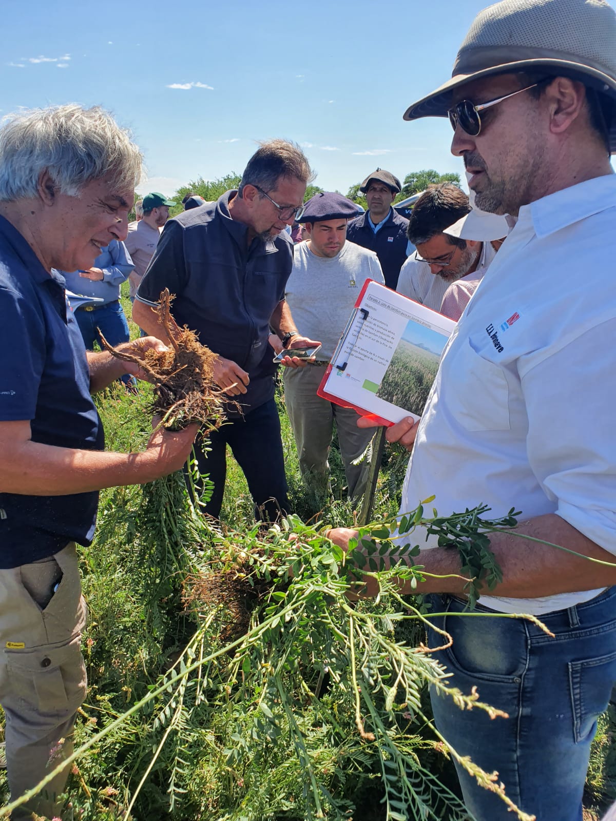 Cuando surgió la inquietud de probar Sainfoin, desde Don Roberto tomaron contacto con los técnicos del INTA Bordenave, Sebastián Lagrange, Andrea Bolletta y Maximiliano Alonso. Los dos primeros se capacitaron en Estados Unidos sobre el uso de esta novedosa pastura. También estuvo Alejandro Perticari, de la agencia del INTA de Concarán, con larga experiencia en pasturas en la estación de Manfredi.