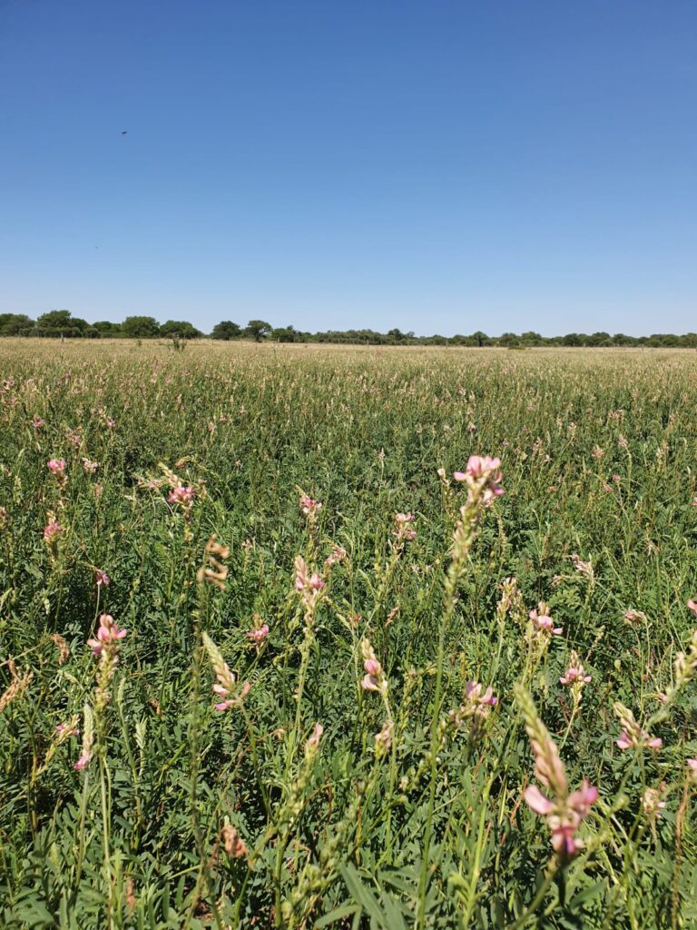 Si hay establecimiento que funciona a la cabeza de las innovaciones y aplicación de nuevas tecnologías, ese es Antiguas Estancias Don Roberto. Con la generosidad que caracteriza a la empresa de Claudio Thyssen, el campo de gran escala abrió sus tranqueras a más de 70 invitados para compartir los resultados de investigaciones y ensayos para la región semiárida realizado con la pastura Sainfoin, iniciadas hace dos años para incorporar nitrógeno en el suelo.