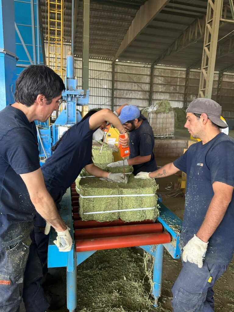 AlfaZAL es la encargada de recibir y procesar la pastura que llega desde el campo, para transformarla en pequeños fardos compactados, de calidad Premium (se considera así cuando tiene más de 18% de proteína), de 25 kilos cada uno.