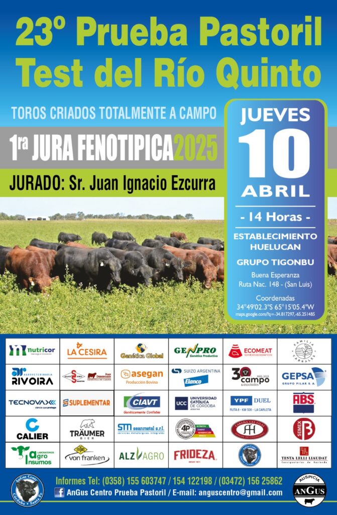 La Prueba Pastoril Test del Río Quinto está diseñada para evaluar toros de entre un año y un año y medio de edad, sometiéndolos a condiciones homogéneas durante nueve meses. Su objetivo es medir el desempeño genético sin la influencia del ambiente, permitiendo identificar a los mejores reproductores de la región.