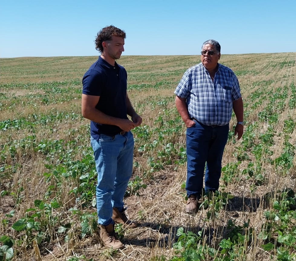 El empresario destacó la evolución del proyecto, que en 2023 comenzó con una prueba piloto de 40 hectáreas y que este año se expandió significativamente. «Tuvimos algunos inconvenientes en un campo con la implantación y tuvimos que resembrar, pero el resultado ha sido muy bueno. Ahora el cultivo está en plena floración y esperamos que las condiciones climáticas nos sigan favoreciendo. Cuanto más tiempo transcurra sin heladas, mejor será el rendimiento».