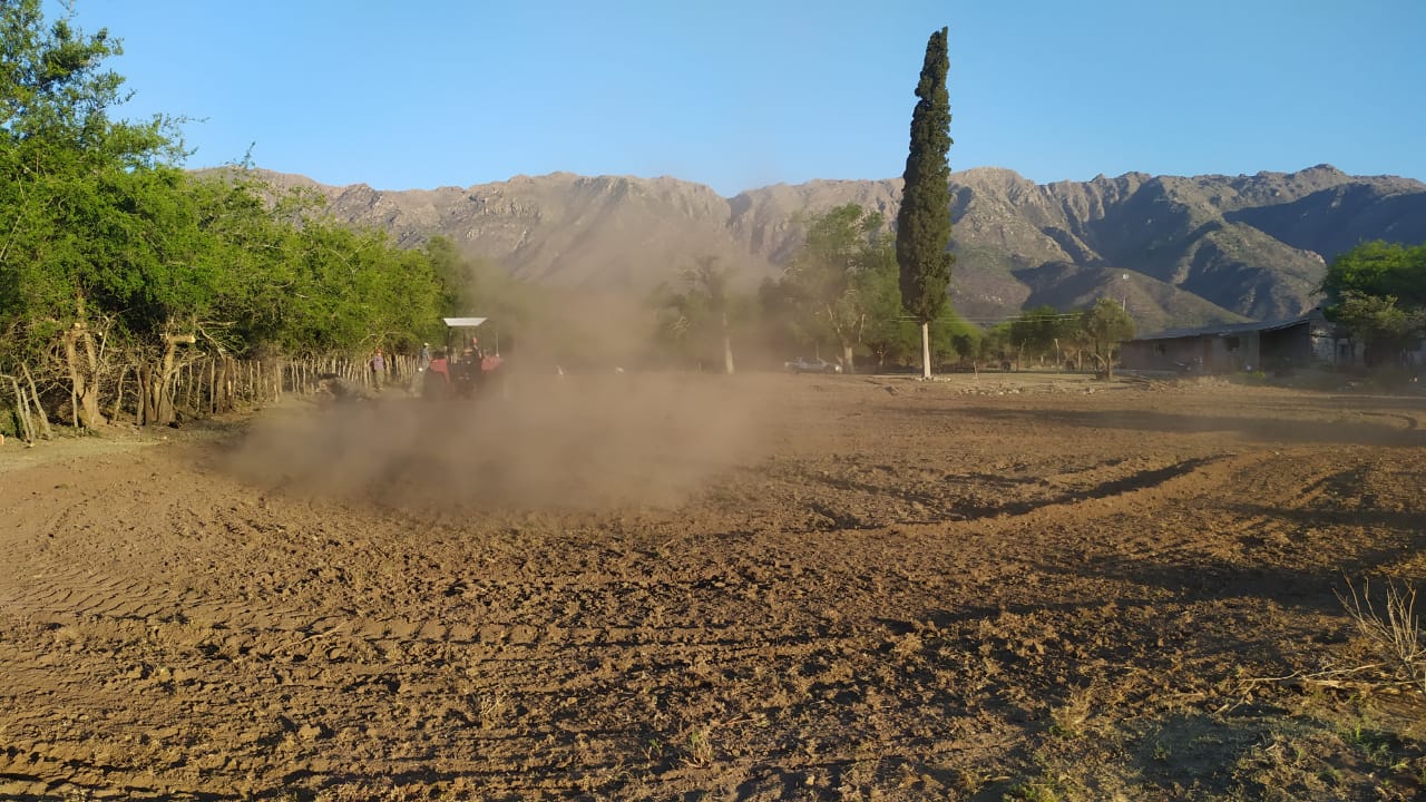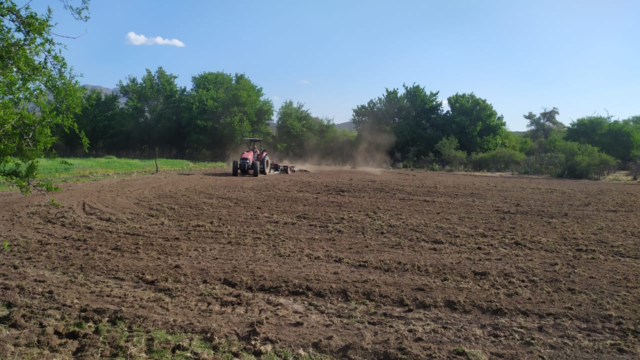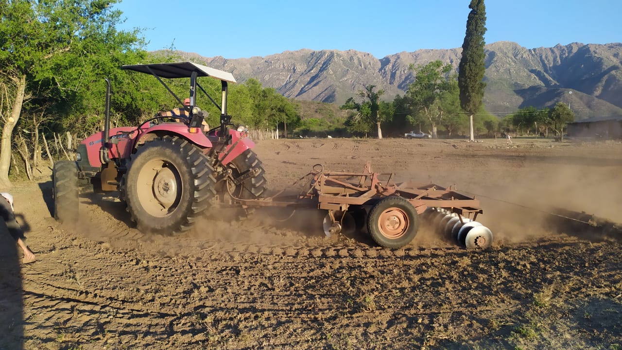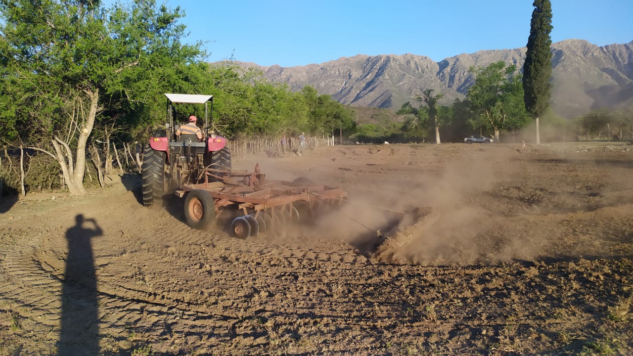 Con un tractor de San Luis Agua fueron arados y rastreados los predios de los pequeños productores, incluso con el apoyo solidario de sus vecinos que aportaron máquinas y hasta gasoil. Con lotes roturados y recibiendo los primeros riegos, la zona muestra hoy un prometedor paisaje productivo.