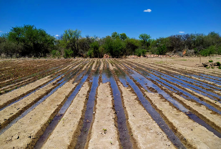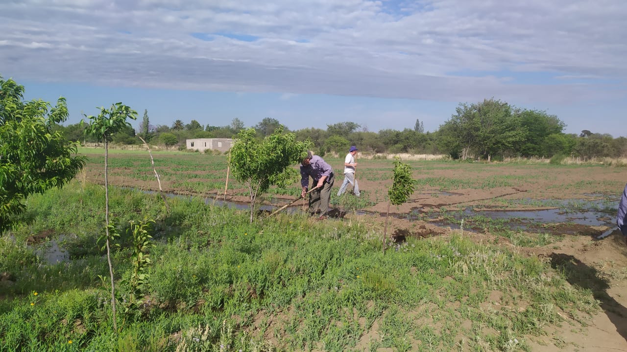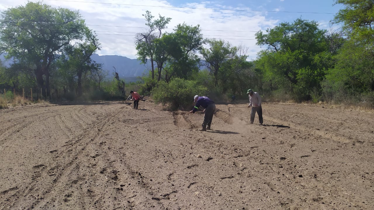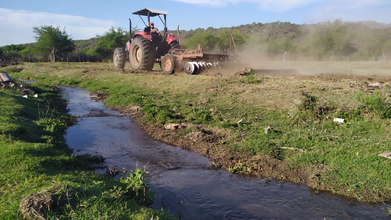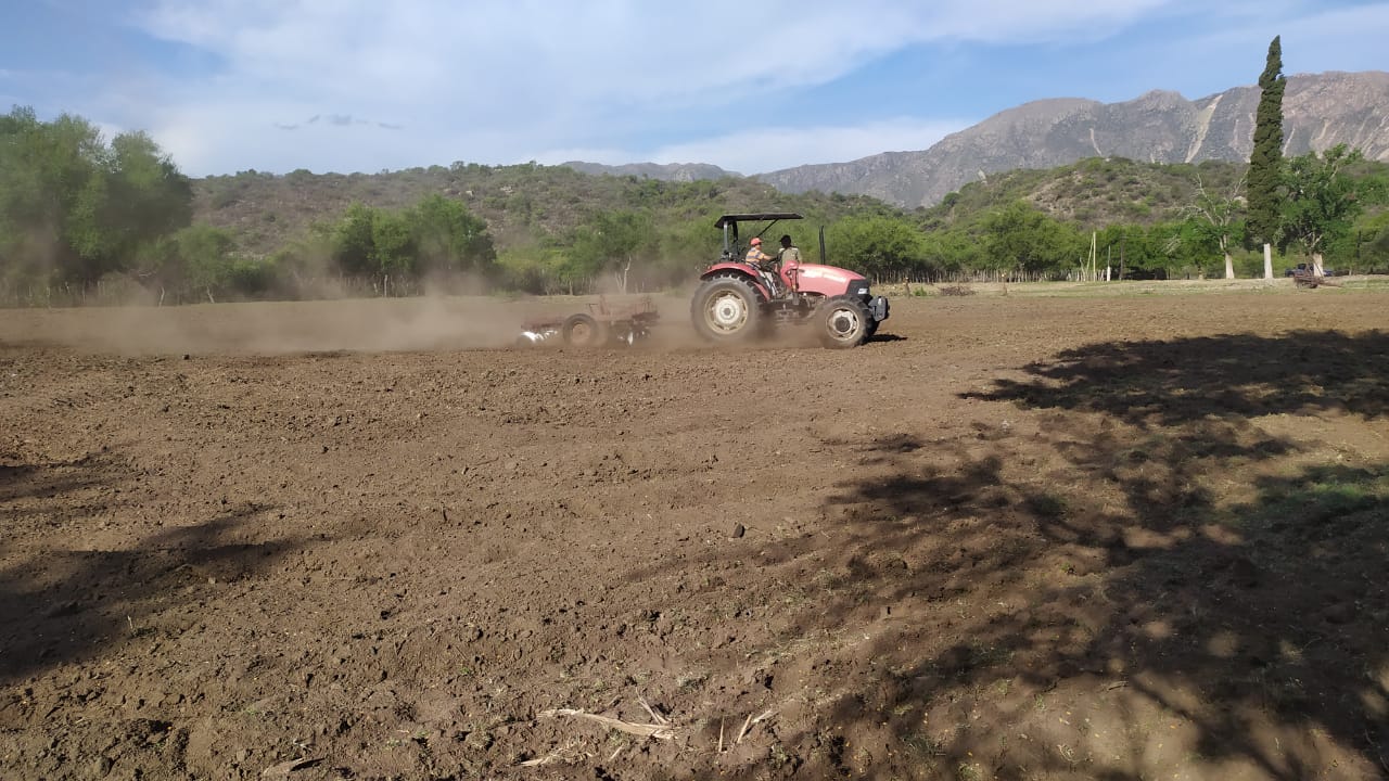Con un tractor de San Luis Agua fueron arados y rastreados los predios de los pequeños productores, incluso con el apoyo solidario de sus vecinos que aportaron máquinas y hasta gasoil. Con lotes roturados y recibiendo los primeros riegos, la zona muestra hoy un prometedor paisaje productivo.