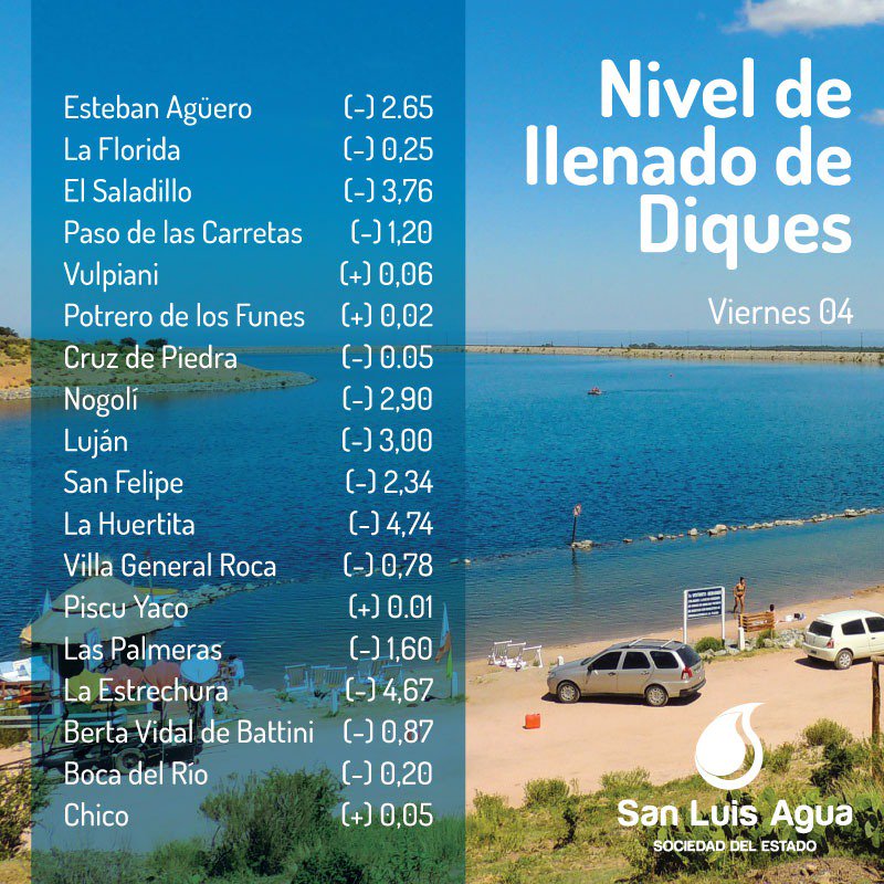 Para mayor información, los interesados pueden contactar con el departamento de Diques, Embalses y Ríos de San Luis Agua, telefónicamente a través de la Autopista de la Información al 4452000 Int. 4873, o vía mail adiquesyrios@gmail.com. Además los interesados en acceder a mayores datos, pueden visitar nuestra página www.sanluisagua.com.ar o descargarse la app institucional para mantenerse informado sobre las novedades en materia hídrica.